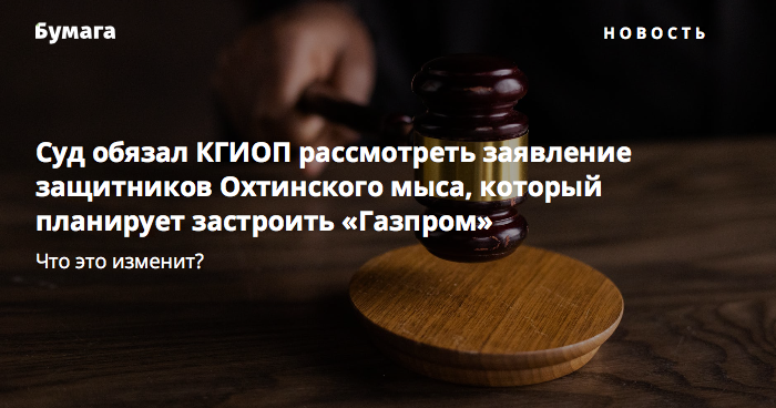 Суд обязал КГИОП рассмотреть заявление защитников Охтинского мыса, который планирует застроить «Газпром»