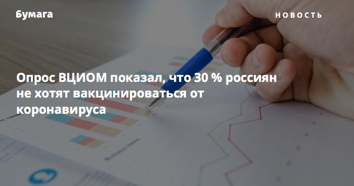 Опрос ВЦИОМ показал, что 30 % россиян не хотят вакцинироваться от коронавируса
