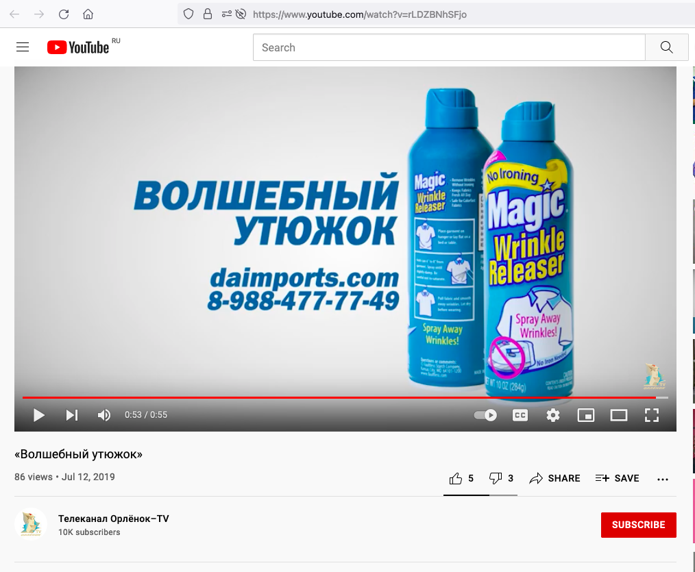По словам источников РС, два года назад Меляков решил торговать американским средством для разглаживания одежды после стирки Magic Wrinkle Releaser, в русском переводе "Волшебный утюжок". Рекламу "волшебного утюжка" снимали сотрудники пресс-службы "Орлёнка", она до сих пор размещена на ютуб-канале ВДЦ. Телефон из ролика указан в профиле ООО "Да импортс", учредитель – по всей видимости, дочь зама Джеуса Диана Андреевна Мелякова. Судя по соцсетям, Диана Мелякова живёт в Калифорнии, дружит в фейсбуке с другой дочерью Мелякова Мариной Саржановой. Марина вместе со своим мужем Дмитрием Саржановым создали туристическое агентство "Ника-М", которое продаёт путёвки в "Орлёнок" и другие лагеря (та же Марина Саржанова работает руководителем Школы вожатых и преподавателем Арт-студии креативного рисования "Орлёнка”).