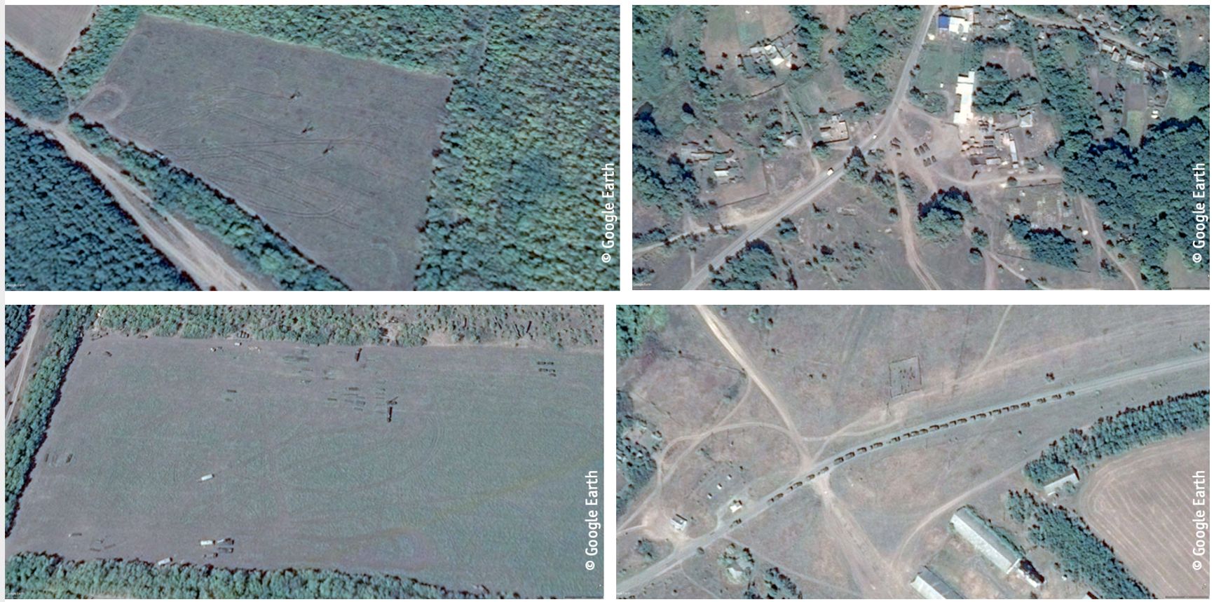 Осенью 2015 г. интернет-сервис Google обновил спутниковые снимки местности к юго-западу от Миллерова. До этого обновления космические снимки большей части данной местности были датированы маем 2014 г. На обновленных снимках, датированных 6 сентября того же года, видны некоторые заслуживающие внимания детали. В районе хутора Дубы на опушке между двумя участками леса видна военная техника. При тщательном изучении изображения видно, что по меньшей мере одна машина напоминает самоходную огневую установку «Бук», поскольку верхняя часть машины (по-видимому, оружейный лафет – пусковое устройство с зенитными ракетами) повернута относительно корпуса. В той же местности видна и другая военная техника, например, стоящие на боевой позиции ракетные комплексы оперативно-тактического значения («Точка-У» или «Искандер-М») с развернутыми средствами связи и боевого управления и т.д.