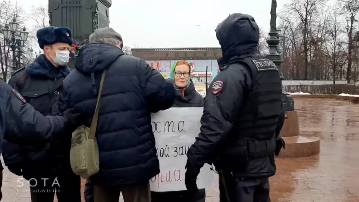 В Москве во время пикетов в поддержку «Мемориала» задержали автора «Новой» Викторию Ивлеву и правозащитника Юрия Самодурова