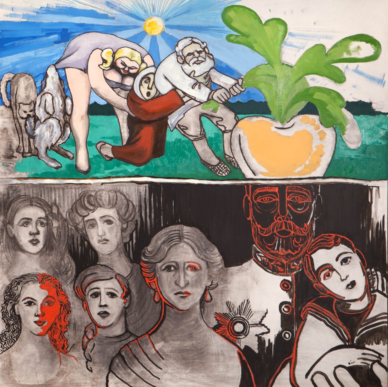 Увидеть можно и серию «Политбюро» с портретами советских функционеров. Одно из самых известных произведений этого проекта — «Горбачев в виде индийской женщины». Художник создал работу в 1989 году, ее неоднократно использовали для обложек разных журналов: Wiener, Newlook и других изданий.