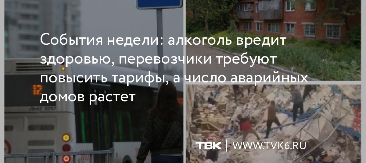 События недели: алкоголь вредит здоровью, перевозчики требуют повысить тарифы, а число аварийных домов растет