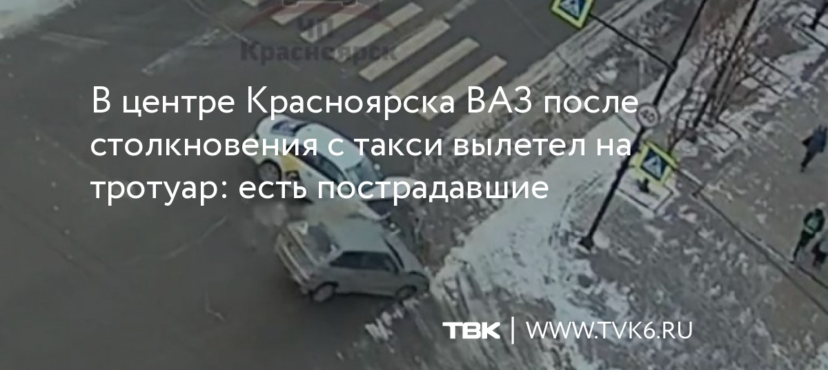 В центре Красноярска ВАЗ после столкновения с такси вылетел на тротуар: есть пострадавшие