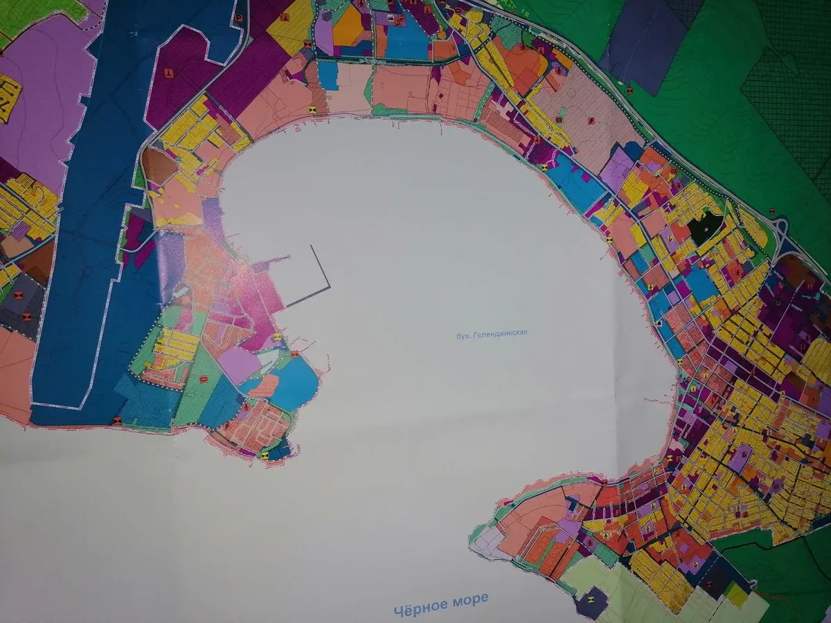 Почти у каждого в смартфоне — фото с розоватой «подковой» геленджикской бухты. «Подкова» розовая потому, что на проекте генплана этим цветом обозначается зона «рекреационного развития». Фактически — это весь береговой пояс бухты шириной в 500 метров.