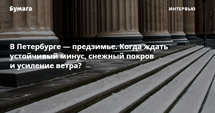 В Петербурге идет предзимье — период с переменчивой погодой, рассказал «Бумаге» главный синоптик Александр Колесов. В интервью мы обсудили, как на город повлияют перепады температур, долго ли продержится снежный покров и ждать ли теплых дней.
