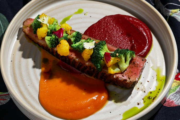 Кухню ресторана возглавил французский шеф Давид Эйро, также работающий в заведении «1703» на борту «Летучего Голландца». Он включил в меню 25 блюд: оленину с облепиховым гелем и соленым шоколадом, карпаччо из осьминога в желе с лимонным сорбетом, лосося гравлакс со свеклой и киноа и другие позиции.