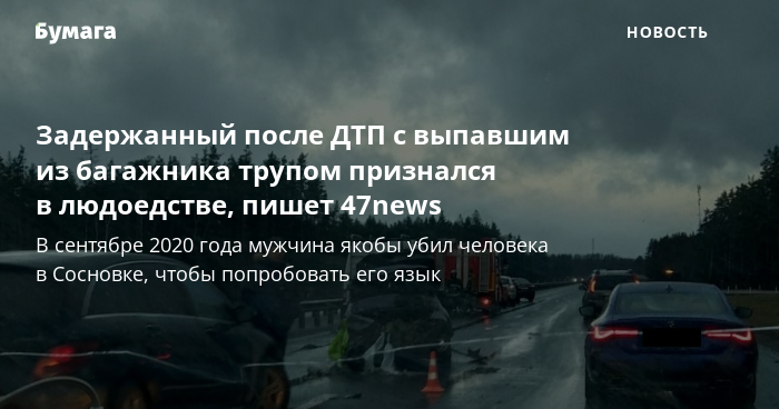 Задержанный после ДТП с выпавшим из багажника трупом признался в людоедстве, пишет 47news