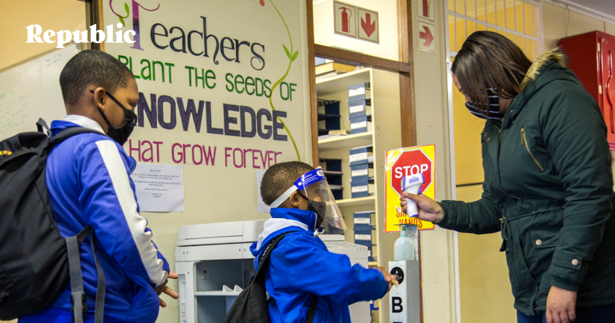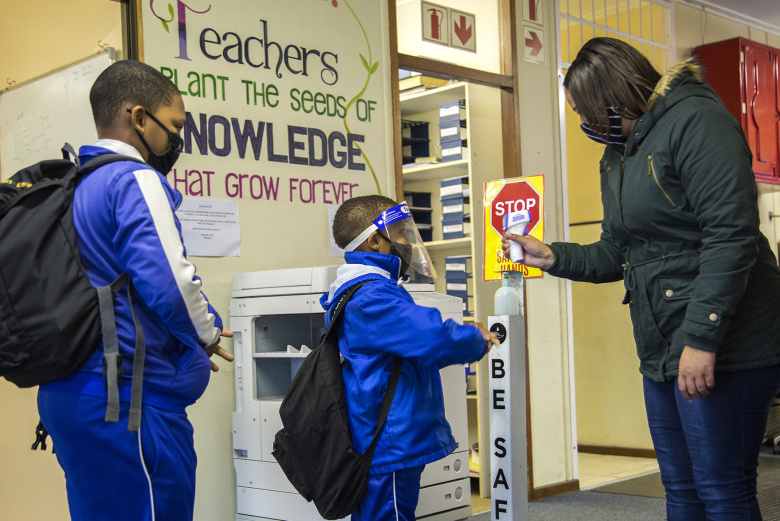 Сотрудник школы в Кейптауне измеряет температуру школьникам. Фото: Fred Barker / XinHua / Global Look Press