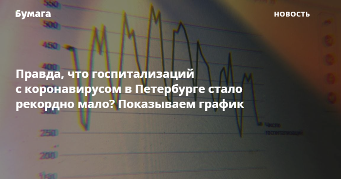«Бумага» составила график изменения уровня госпитализаций. На нем можно увидеть, что показатели госпитализации снижаются каждый понедельник и вторник. Как объясняли «Бумаге» в комитете по здравоохранению, на сайте Смольного публикуют данные с задержкой в два дня, то есть сниженные показатели — это информация за выходные.