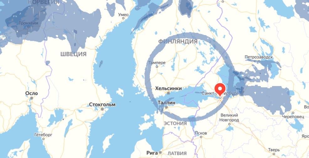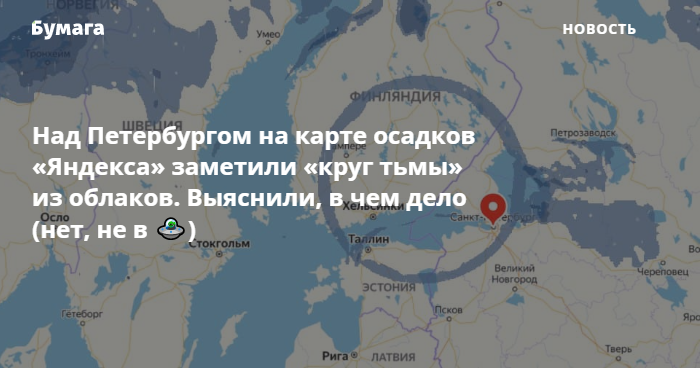 Над Петербургом на карте осадков «Яндекса» заметили «круг тьмы»