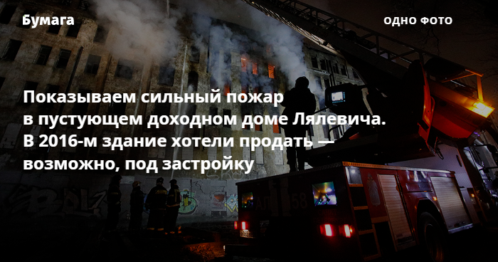 Показываем сильный пожар в пустующем доходном доме Лялевича, который хотели продать — возможно, под застройку. Одно фото