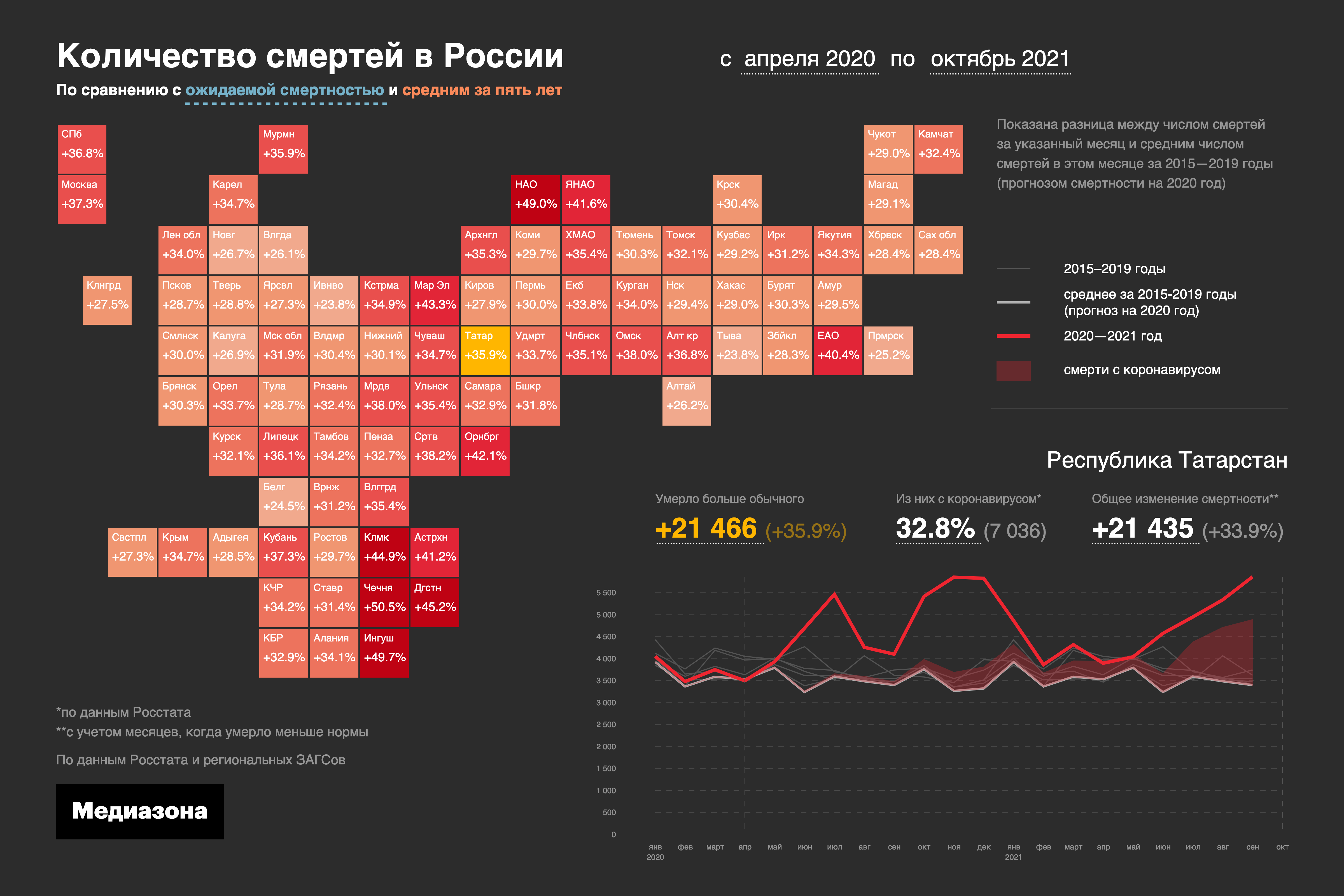 Данные по смертности в Татарстане с апреля 2020 по октябрь 2021 года.