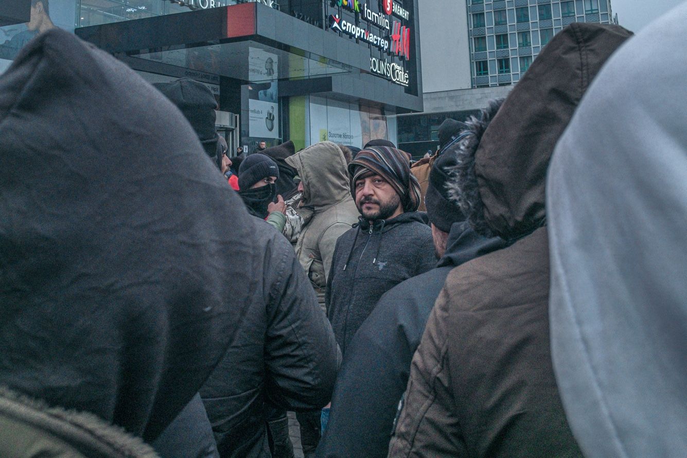 Те, кто хочет согреться или перекусить внутри, оставляют свои вещи или в подземных переходах, или около стен самого торгового центра — но тогда выходит охранник и требует их убрать. Кто-то просто бросает рюкзаки на землю.