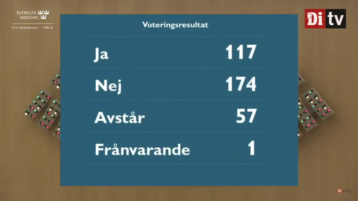 В общей сложности 174 из 349 депутата — меньше половины — проголосовали «против» Андерссон.