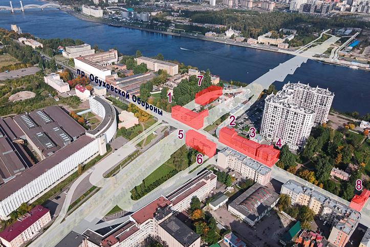 К сносу предлагают здания по проспекту Обуховской Обороны: пять 1917 года постройки, одно — 1901 года, еще два — 1871 и 1851 годов. При этом сейчас снос этих зданий запрещен региональным законом № 820–7 об объединенных охранных зонах. Во время заседания совета 23 ноября было предложено внести изменения в закон, чтобы сделать снос зданий возможным.