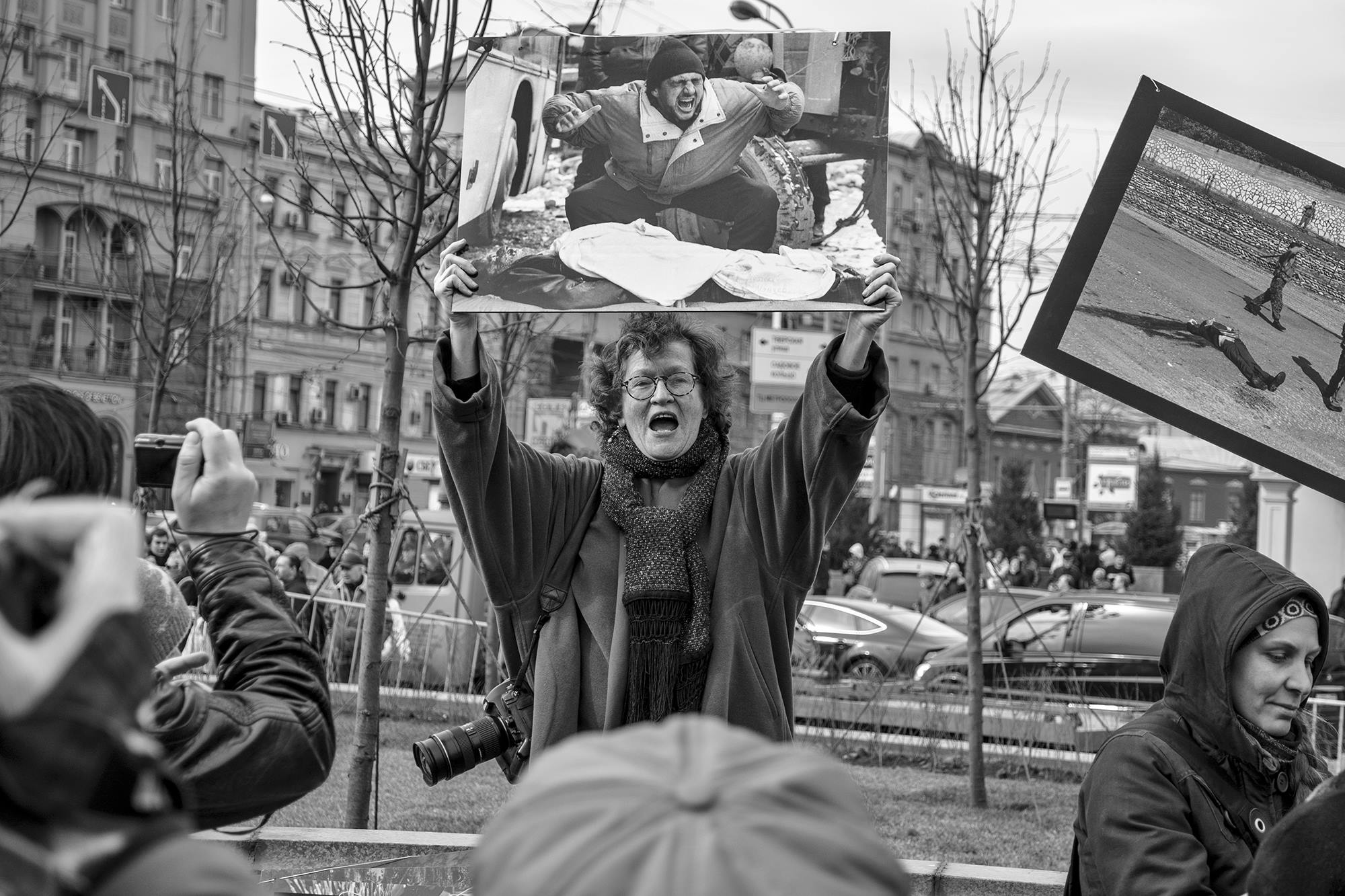 Пикет был в Москве в субботу, 20 ноября. Двое суток Юрий Самодуров и Виктория Ивлева после задержания провели в изоляторе – до суда. За административное нарушение суд назначил им штрафы: Самодурову 20 тысяч рублей, Ивлевой – 150. Для нее это повторное нарушение. Как фотограф и гражданский активист, она не пропускает ни одной акции солидарности.