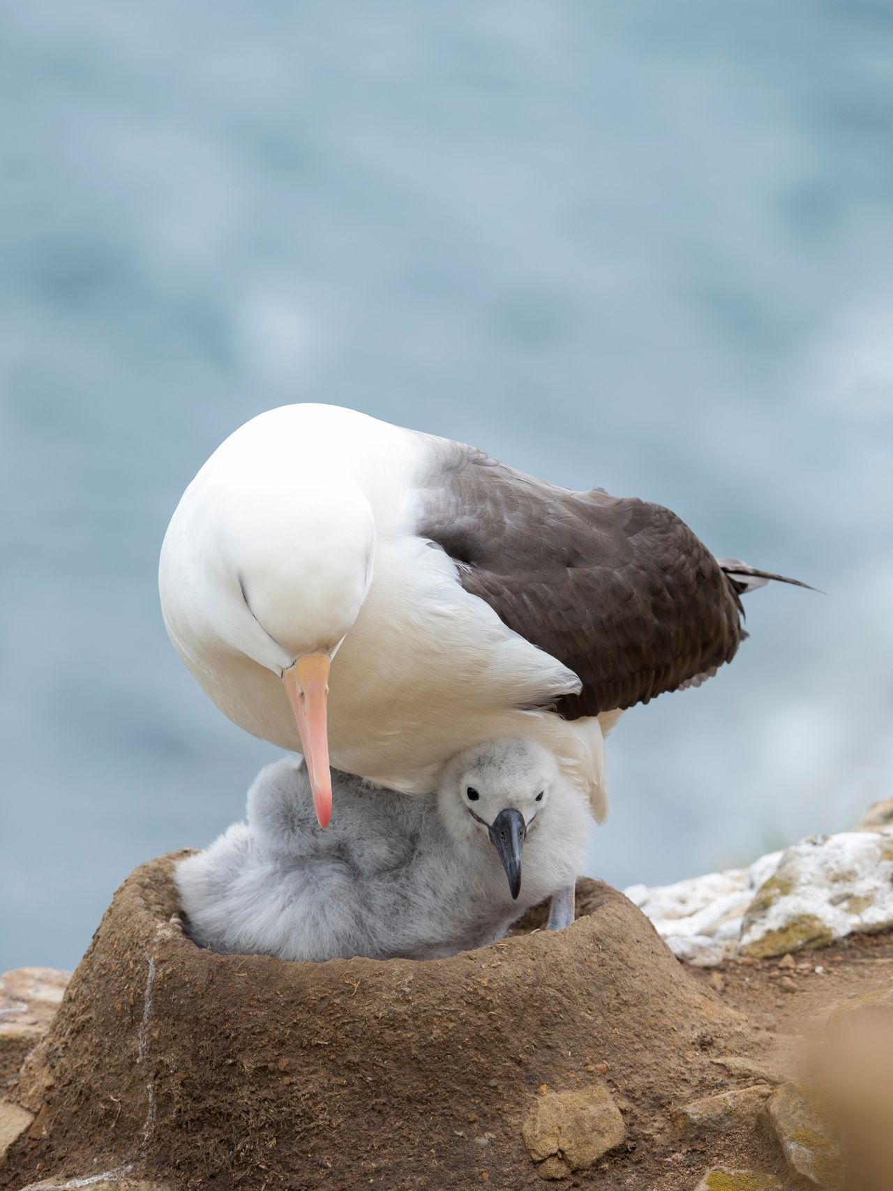 Около 90% видов птиц моногамны, а пары альбатросов считаются одними из самых крепких. Самцы и самки выбирают друг друга в ходе брачного танца и остаются верны этому выбору всю жизнь. Они проводят большую часть времени на море, но регулярно возвращаются в места гнездования и высиживают птенцов с одним и тем же партнером. В удачные годы пары чернобровых альбатросов распадаются менее чем в 4% случаев, и чаще всего причиной становятся неудачи при размножении: если отложить яйцо не удалось или птенец не выжил.