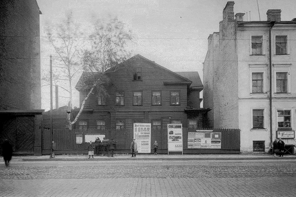Жилой дом 1871 года постройки. Вероятно, состоит из нескольких частей, объединенных в единый фасад в послевоенное время.