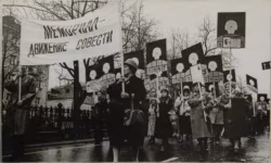 Женщина с плакатом с цифрой 7 – доцент кафедры общего и славянского языкознания Пермского университета, дочь "врагов народа" Нонна Петровна Потапова. В 1937 году, когда ей было 9 лет, ее отца Петра Федоровича Галанинского, начальника заготовительной конторы Камского речного пароходства, арестовали. Маме удалось добиться свидания с отцом. Вот как Нонна Петровна описывала ту встречу: