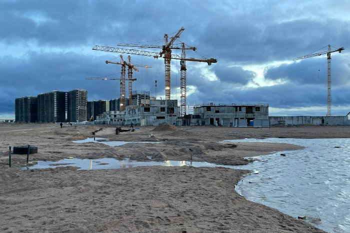 Местные начали обсуждать ситуацию в сообществе «От Стрелки до Гавани» в фейсбуке. Одна пользовательница предположила, что «намыв проваливается». Другая написала, что причина образования пруда в этом месте — откачивание воды с соседних участков. «Это строительная площадка, получается, а не прогулочная зона», — отметила девушка.