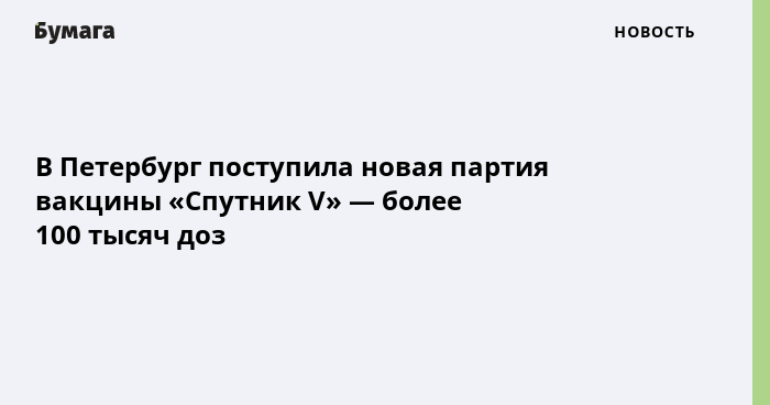 В Петербург поступила новая партия вакцины «Спутник V» — более 100 тысяч доз