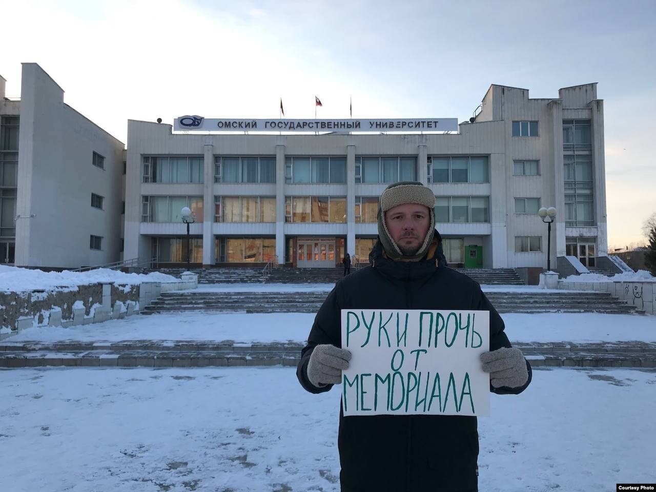 Омск: местный активист провел одиночный пикет в поддержку "Мемориала"