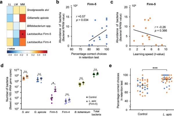 Один из этих видов — Lactobacillus apis — показал очень сильное влияние на способность шмелей запоминать цвет горьких «цветков». Когда исследователи увеличивали концентрацию этих бактерий в пищеварительной системе пчёл — они после трёхдневного перерыва почти сразу начинали избегать нежелательные пластинки, как будто перерыва не было вовсе.
