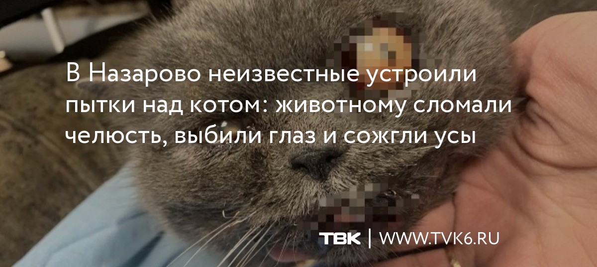 В Назарово неизвестные устроили пытки над котом: животному сломали челюсть, выбили глаз и сожгли усы