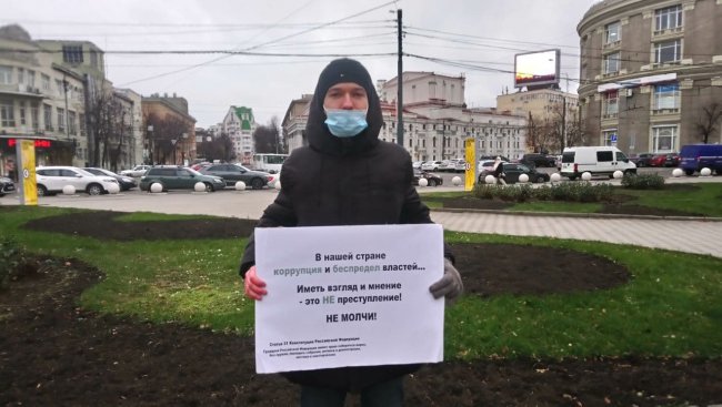 В Воронеже задержали активиста Андрея Шведа, проводившего одиночный пикет против коррупции. Об этом ОВД-Инфо сообщил Александр Желтухин.