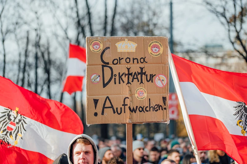 На следующий день после объявления общенационального локдауна, 20 ноября, 35 тысяч человек провели акцию протеста в Вене. Некоторые из них были задержаны за демонстрацию нацистской символики.