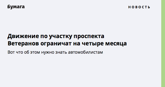 Движение по участку проспекта Ветеранов ограничат на четыре месяца