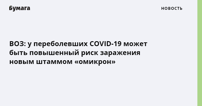 По предварительным данным, переболевшим легче повторно заразиться омикроном, чем другими вызывающими беспокойство штаммами (альфа, бета, гамма и дельта). Однако в ВОЗ подчеркивают, что пока нет достаточных данных о том, что «омикрон» опаснее «дельты». Также неясно насколько «омикрон» способен обходить иммунитет после вакцинации. Сейчас по всему миру ведутся исследования, чтобы это прояснить.
