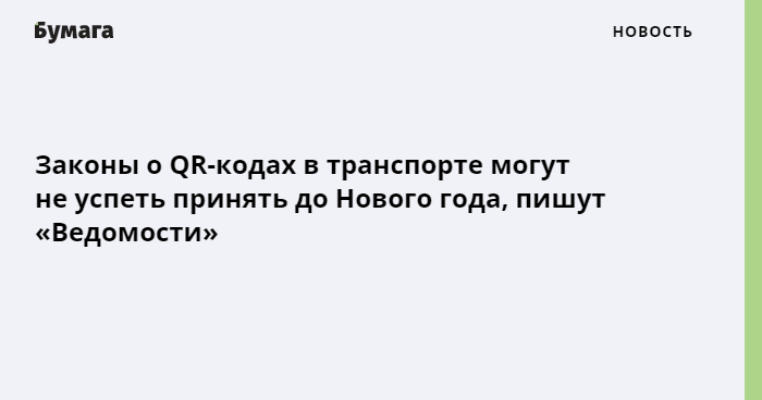 В России до Нового года могут не принять законы о QR-кодах в общественных местах и в транспорте. Об этом сообщают «Ведомости» со ссылкой на источник в комитете Госдумы по охране здоровья.