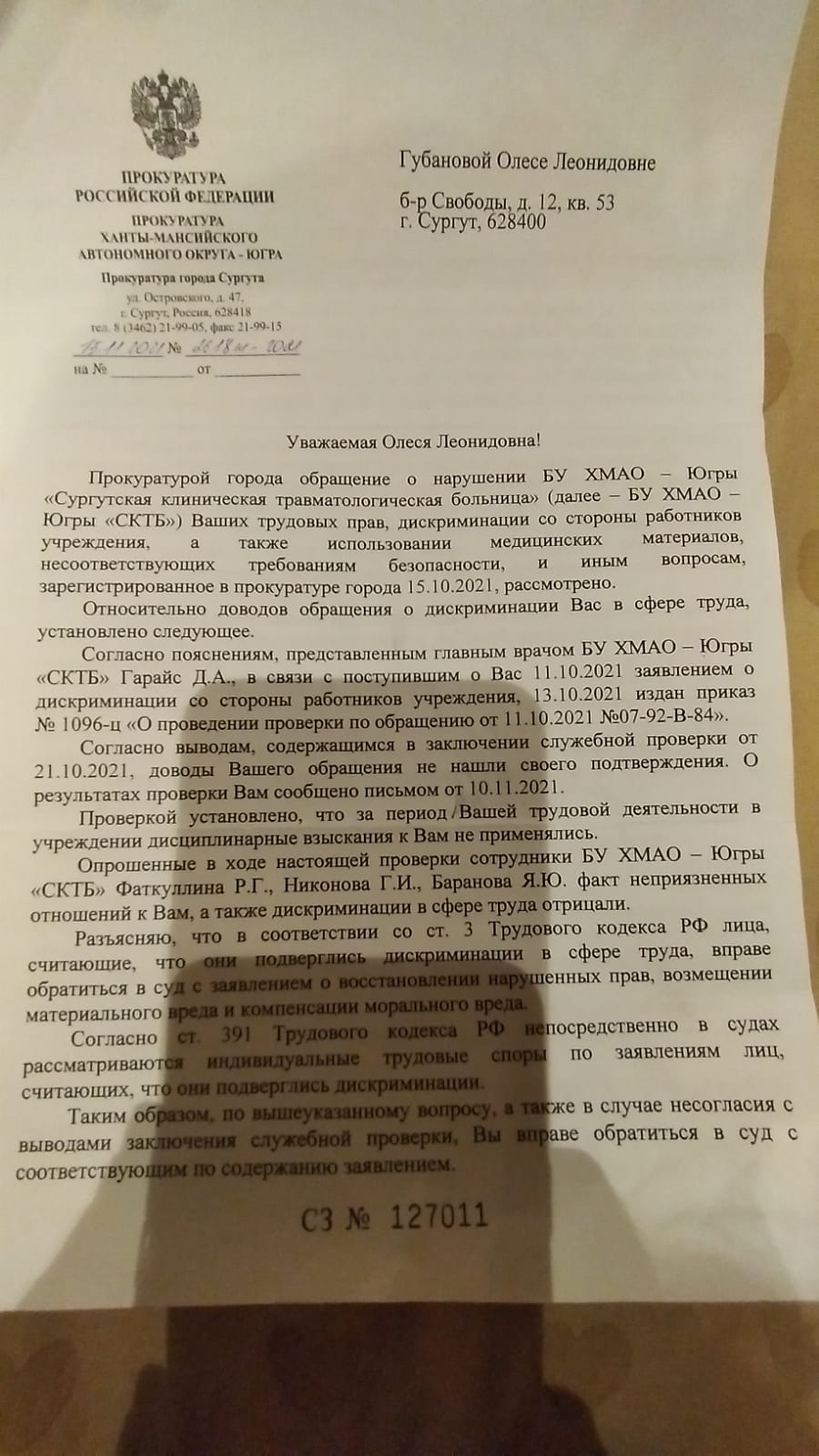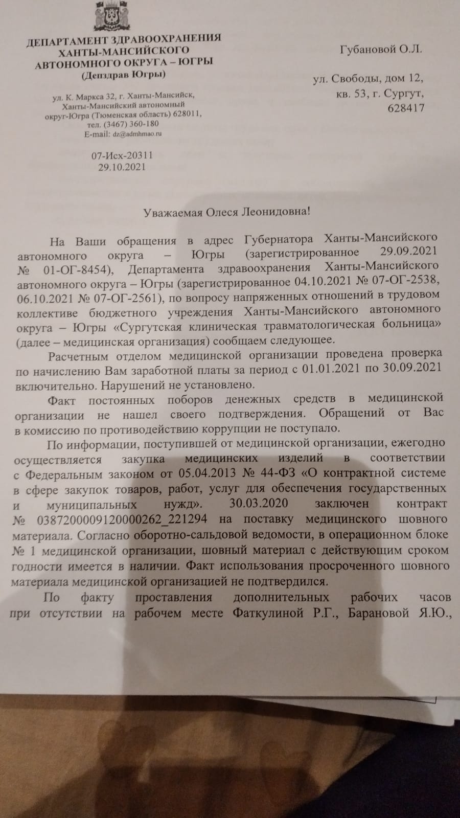– Неделю назад опять склад "чистили", коробками выносили. То есть они про это опять заранее знали. Как можно в таком случае верить в какую-то объективность и беспристрастность? Человек умер, ребенок без матери остался, а они все туда же: как бы им не прилетело. Я в этом укрывательстве участвовать не желаю, вот вчера была в Следкоме по делу Аяжан – как есть, так и рассказала. Все доказательства нарушений, о которых она писала, тоже предоставила. Буду бороться до конца! Уже написала жалобу в генпрокуратуру, записалась на прием к полпреду президента в Екатеринбурге, на личный прием к губернатору Югры. Посмотрим, чем закончится, – говорит Губанова.