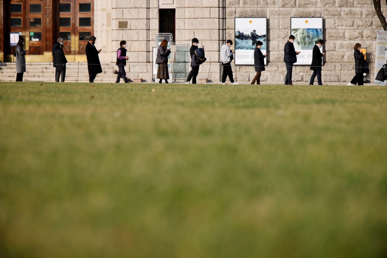 Heo Ran / Reuters / Scanpix / LETA Временный центр тестирования на ковид в центре Сеула, Южная Корея. 29 ноября 2021 года