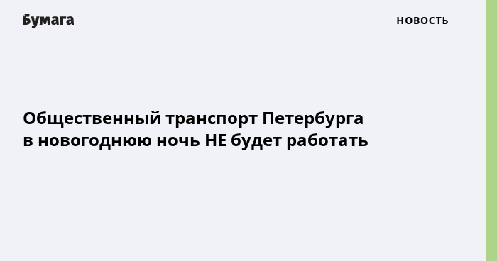 Общественный транспорт Петербурга в новогоднюю ночь НЕ будет работать