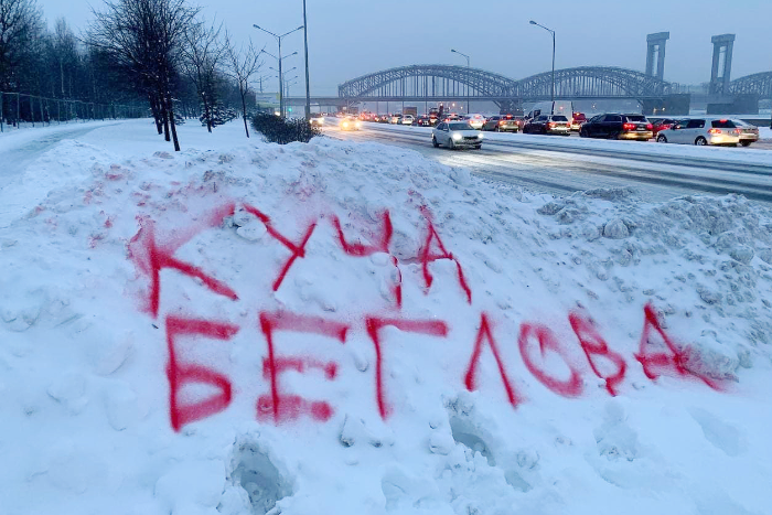 Чтобы обратить внимание на проблему, петербуржцы пишут на сугробах фамилию губернатора Александра Беглова. Это повторение акции, которую впервые провели в городе в 2019 году, когда улицы тоже были завалены снегом.