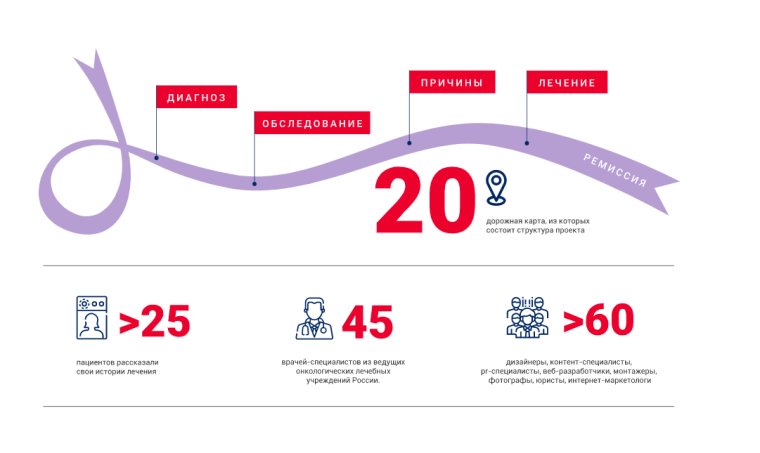 Создать большой «Онконавигатор» помогли грант Фонда президентских грантов и поддержка компаний-партнеров — «Берингер Ингельхайм», «Евроонко», BIOCAD, «ПЭТ-технолоджи», Общество специалистов по опухолям головы и шеи и другие.