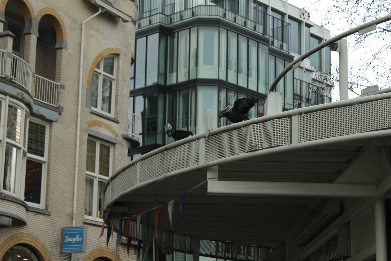 А вот стала им, я считаю, следующая их работа — panoptICONS. Камероголовые вороны, рассевшиеся на фонарях и в гнездах из сплетенных проводов, — по-настоящему пугающая персонификация городского видеонаблюдения. Дергающие сервоприводными головами, птицы-киборги следят за проходящими мимо, провожая их зрачками-линзами и неугасающими красными лампочками REC. Они словно Хугин и Мунин современного, дигитализированного Одина, посланцы всевидящей и недремлющей сущности, желающей контролировать всех и вся, превращая мир в прозрачную тюрьму-паноптикум.