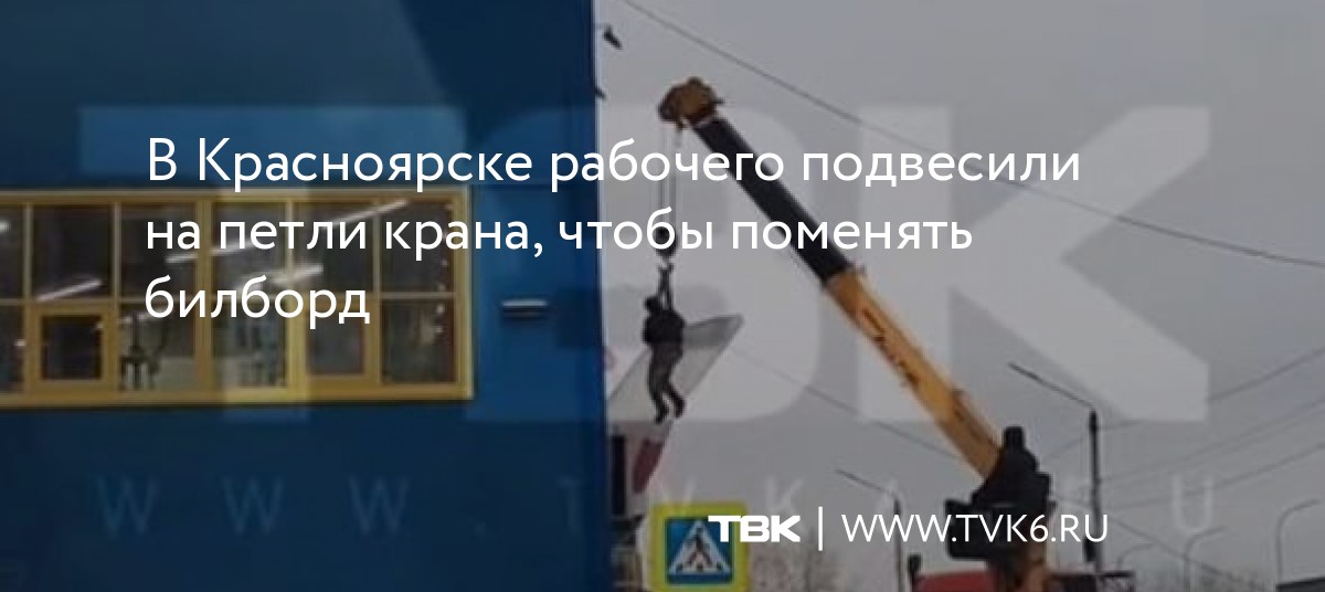 В Красноярске рабочего подвесили на петли крана, чтобы поменять билборд