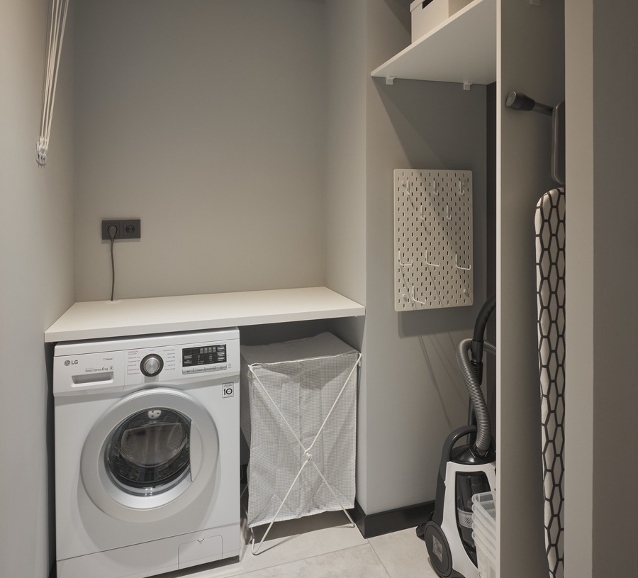 Для удобства хозяев архитекторы спроектировали постирочную и просторную ванную комнату и две ниши для хранения вещей.