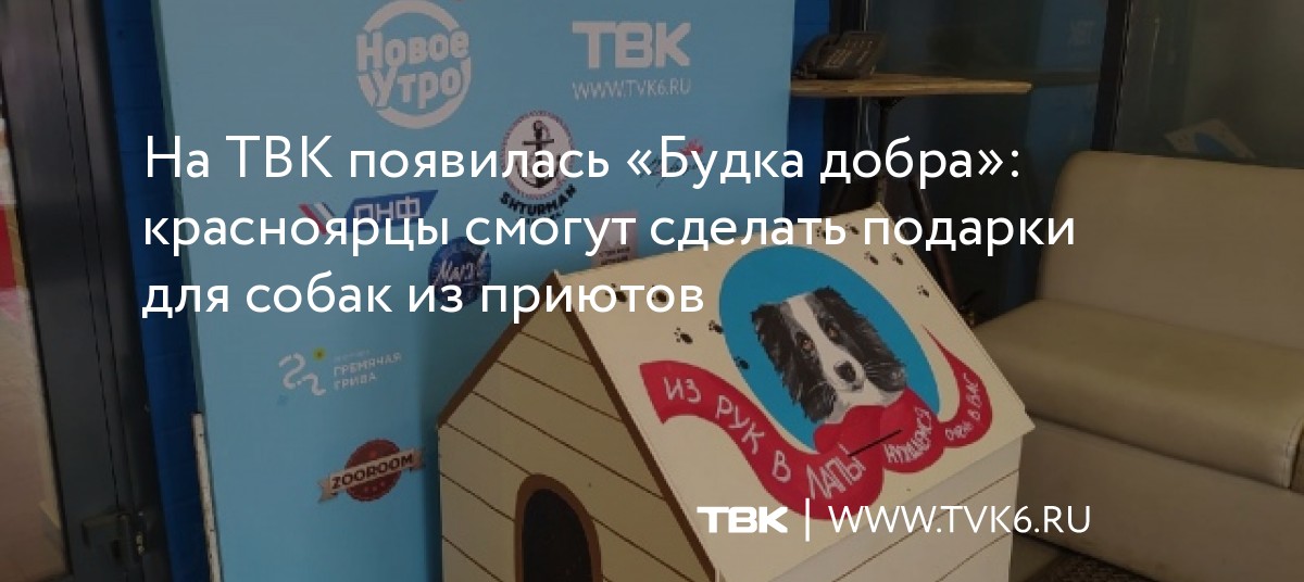В офисе «ТВК Красноярск» появилась «Будка добра». Это благотворительная акция, цель которой – помочь бездомным животным из приютов.