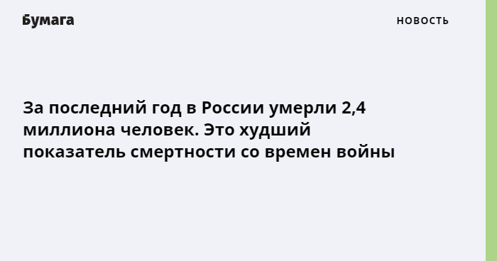 За последний год в России умерли 2,4 миллиона человек. Это худший показатель смертности со времен войны