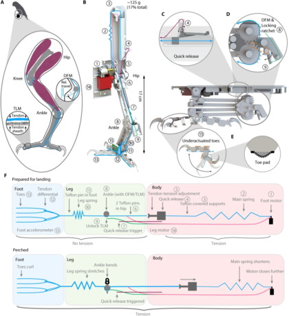 Однако полностью скопировать конструкцию лап попугая не получилось — они были слишком малы и слабы, чтобы выдержать динамическую нагрузку во время приземления дрона. Поэтому инженеры использовали как образец лапы сапсана. «Кости» напечатали на 3D-принтере из полимерной массы, а роль мускулов и сухожилий взяли на себя электромоторы и нити из лески. За два десятка попыток инженерам удалось прийти к рабочему варианту роболап, которые реагируют всего за 20 миллисекунд, цепко обхватывая предмет или поверхность и погашая удар при посадке.