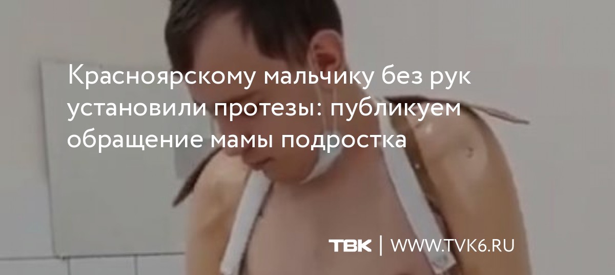 Мальчику без рук из Красноярска установили протезы: публикуем обращение мамы подростка