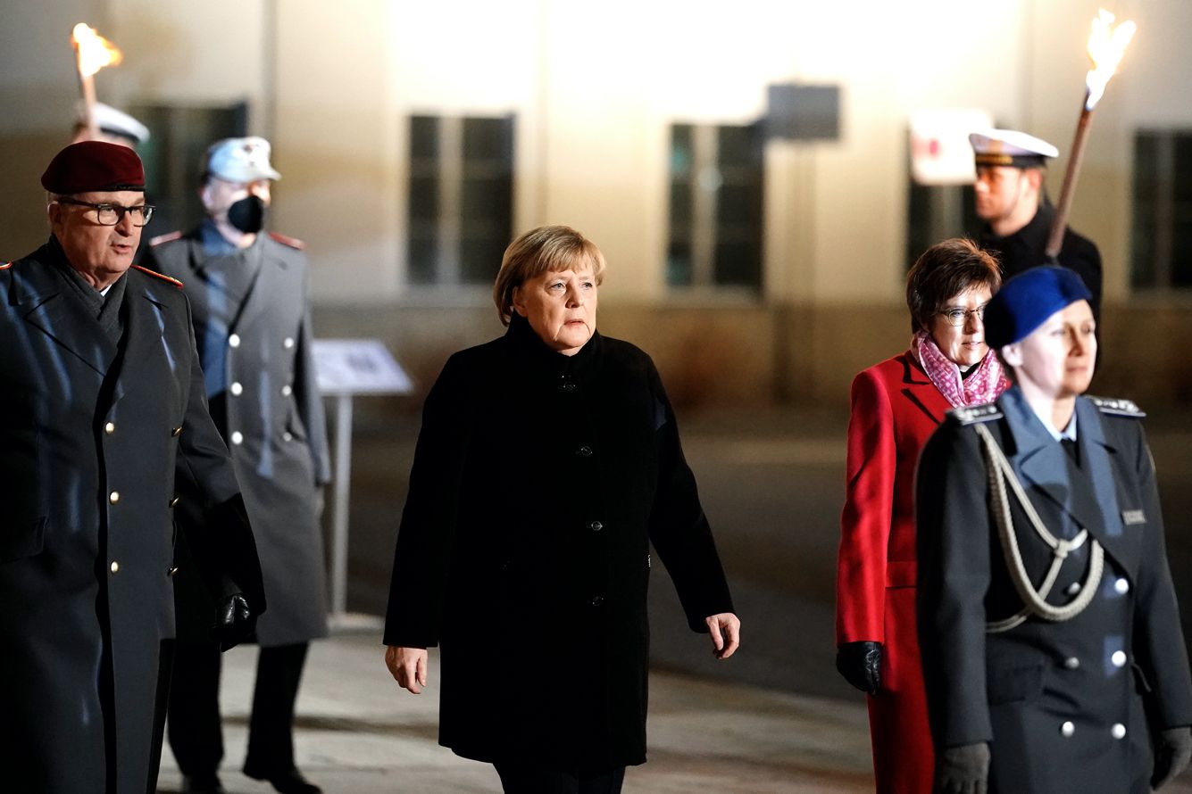 Вечер четверга, 2 декабря, пустая и довольно некрасивая площадь в правительственном квартале Берлина. Ангела Меркель сидит в черном пальто в кожаном кресле, по левую руку в таких же креслах ее подруга — министр обороны Аннегрет Крамп-Карренбауэр, по правую — генерал бундесвера в красном берете. Перед ней замерзшие факельщики с горящими факелами и военный немецкий оркестр. Музыканты в форме играют песню, в тексте которой молодая девушка ругает своего бойфренда за то, что он забыл взять с собой в отпуск на Балтийское море цветную пленку для фотоаппарата, и фотографии с нудистского пляжа (да, в песне поется и о нудистском пляже) получились скучными и черно-белыми.