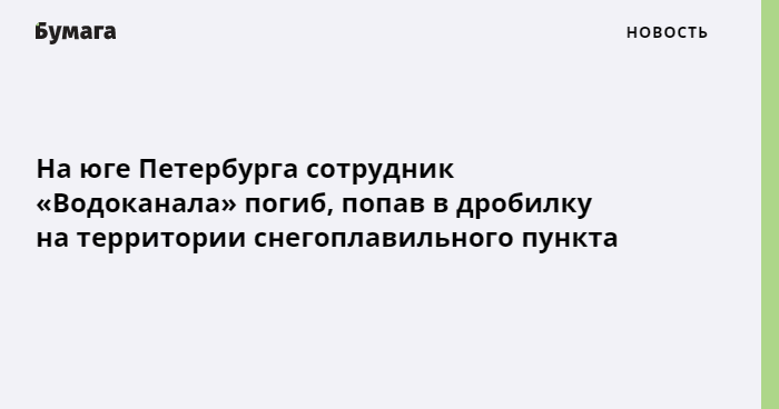 Трагедия произошла около 14 часов на территории снегоплавильного пункта (Краснопутиловская, 69). Как сообщает «Водоканал», работник организации попал в сепараторную дробилку и получил травмы, несовместимые с жизнью.