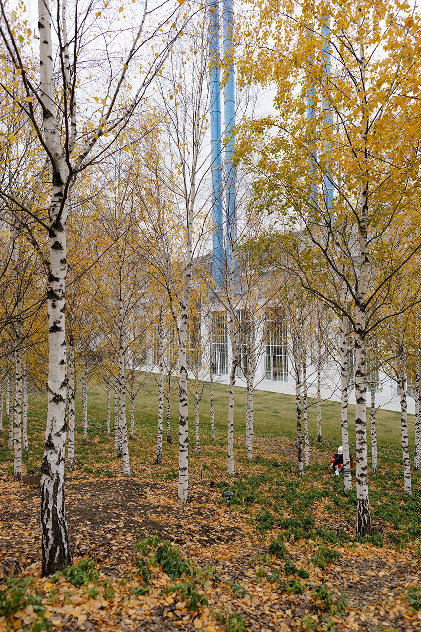 Как рассказывает Баталова, «поиск идеальных берез» оказался непростым: деревья должны быть одного возраста и одной ширины. «Уже совершенно отчаявшись и объездив все питомники, мы нашли деревья в последнем пункте из списка, в Ярославской области. Им было 25 лет на момент высадки». Они появились три года назад — и, как утверждает Баталова, сейчас полностью прижились.