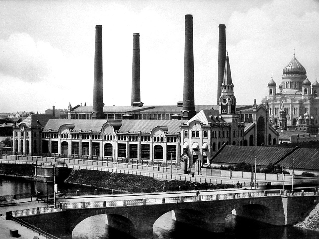 ГЭС-2 — это Городская электростанция, а не Гидроэлектростанция, как можно подумать из-за аббревиатуры. Ее открыли на острове Балчуг 2 февраля 1907 года. Есть несколько фотографий этого события: священник совершает «молебствие» и окропляет святой водой турбины швейцарской фирмы Brown, Boveri & Cie. Церемония проходит в здании, которое до странного похоже на собор: главный зал имеет форму трехнефной базилики и пронизан огромными окнами.